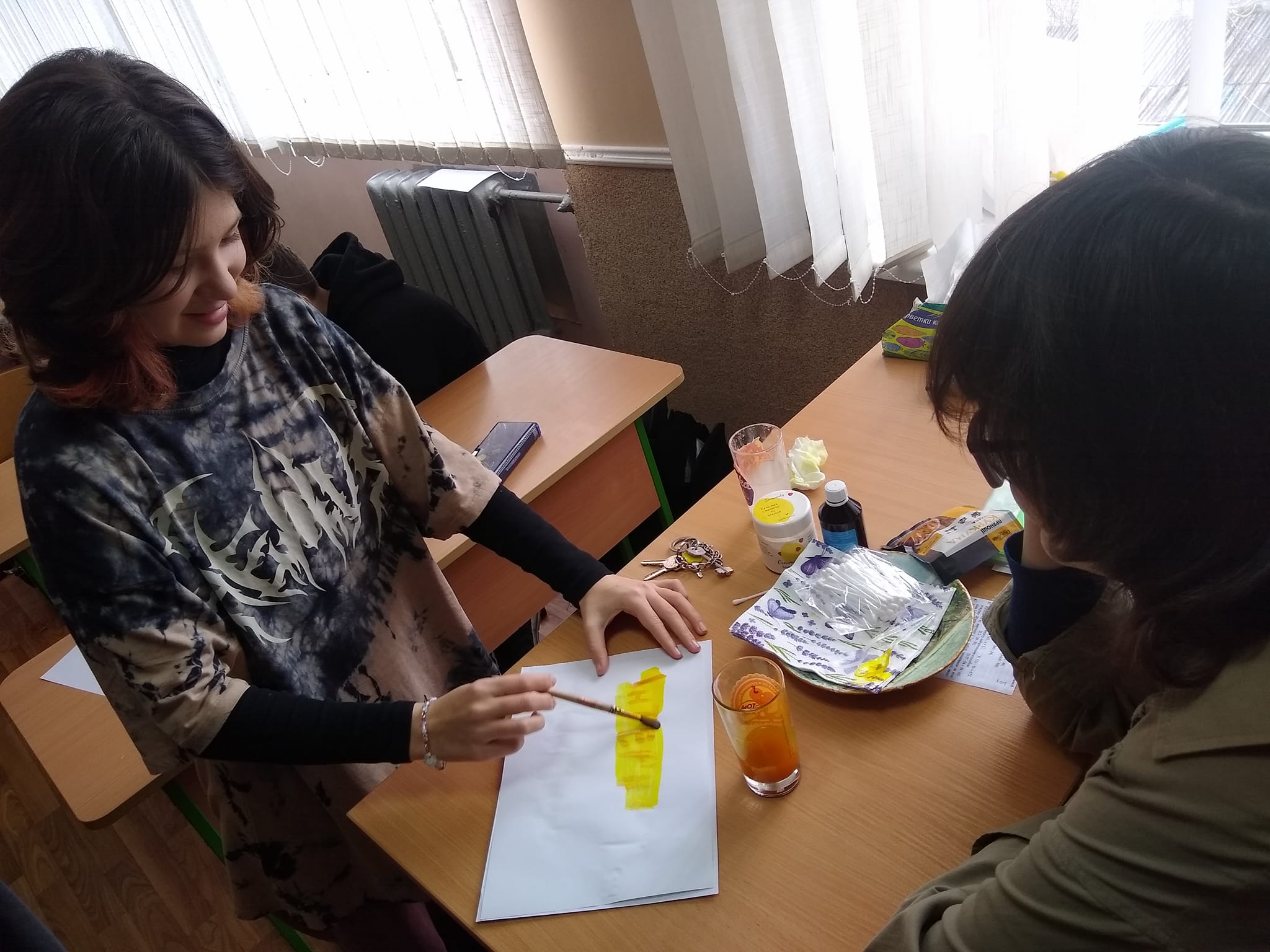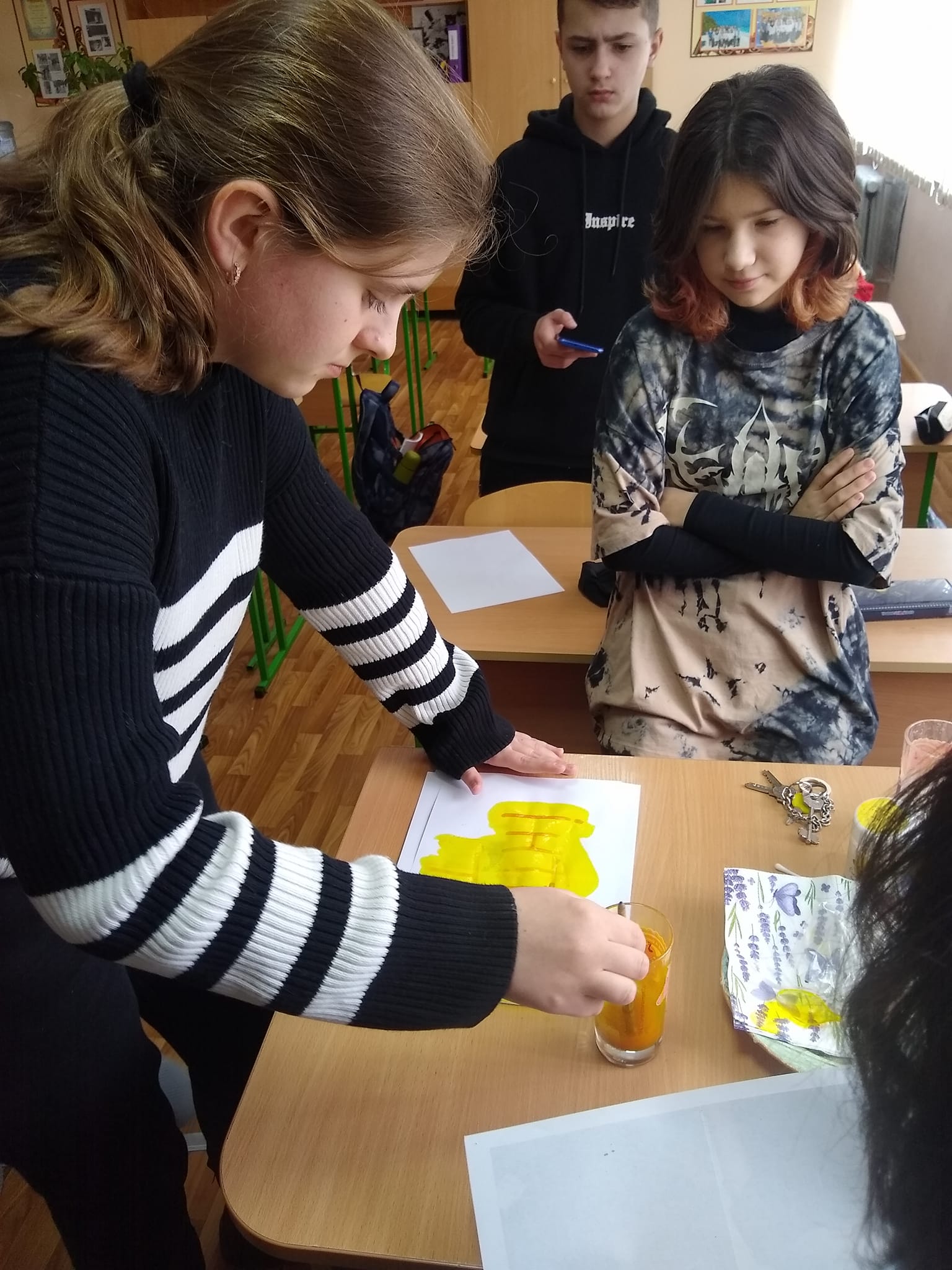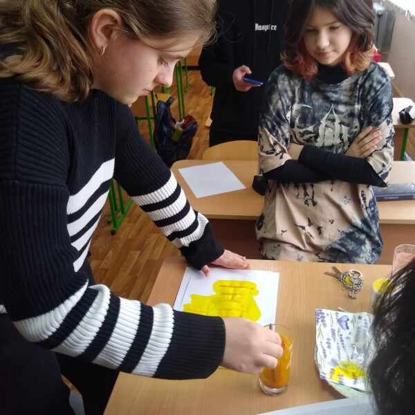 Цікаво писати невидимими чорнилами? Так, але все таємне колись стає явним, треба тільки додати куркуми). Поки експериментував 7А, в 6Б з’явилися нові друзі – Спільники))